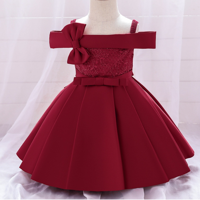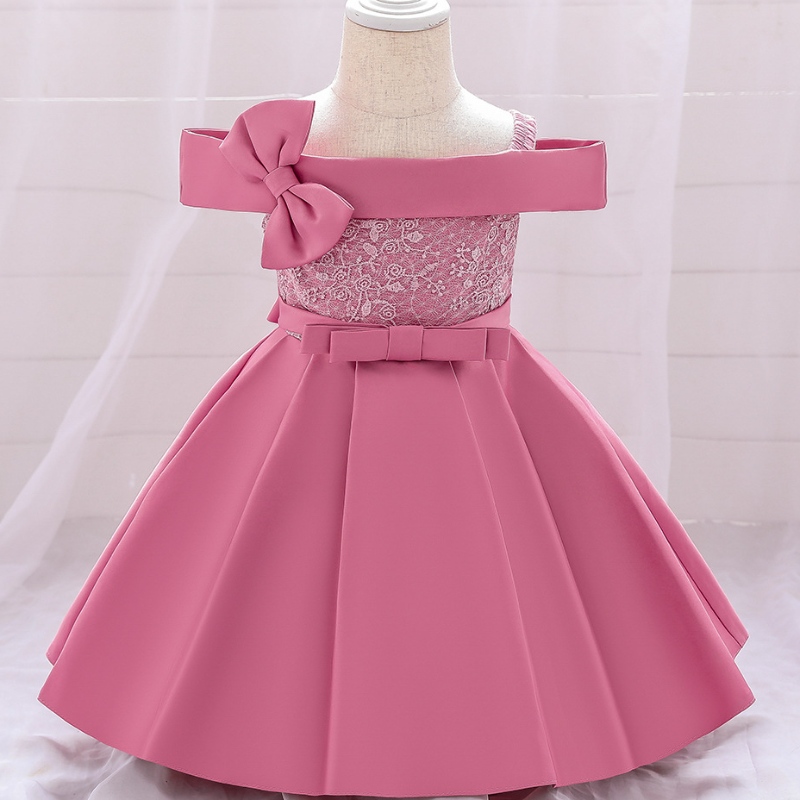 Prinzessin -Kleid von Kindern eine Schulterspitze Spitze Bow Baby Girl Kleider Kinder Partykleid Kleid Kleid