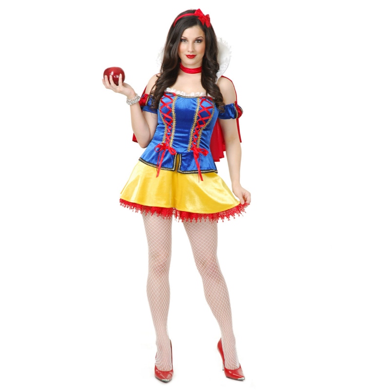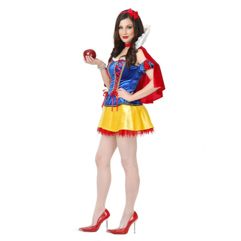 Dieses Schneewittchen Prinzessin Kostüm besteht aus einem blau-gelben Minikleid und passendem Kopfstück.